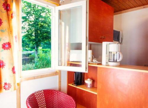 The chalets are arranged on private shaded pitches and reserve a space for those who wish to sleep in tents. Your car will be parked in a reserved parking lot.