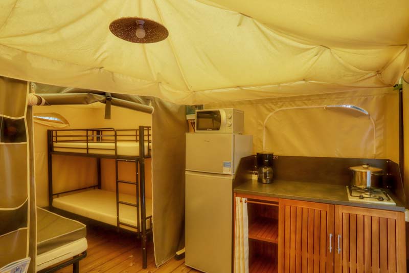 Life in a furnished tent with all the comforts of a chalet or mobile home!